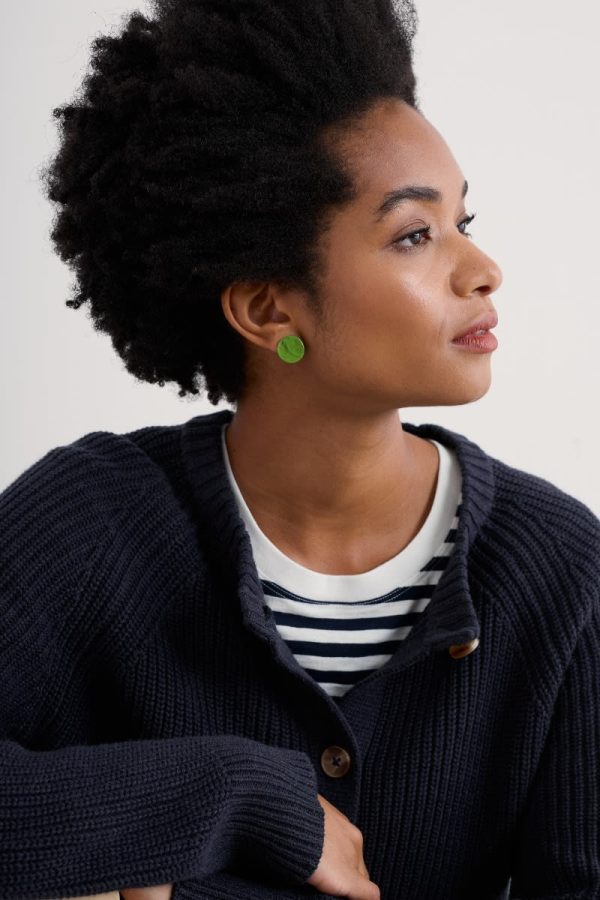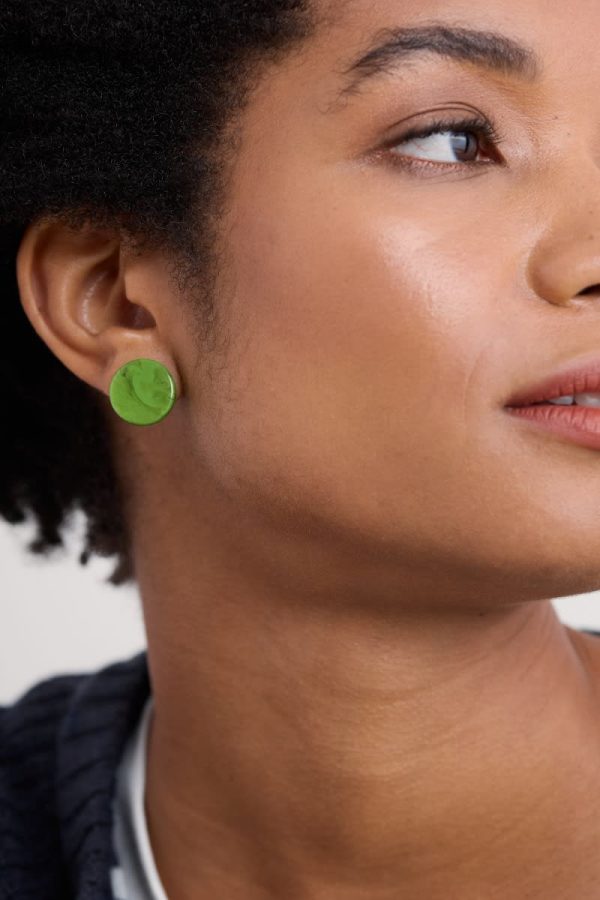 Smooth, round, marbled resin studs with a marble effect. An everyday piece to add a little colour to any outfit, that pairs effortlessly with this season’s clothing.