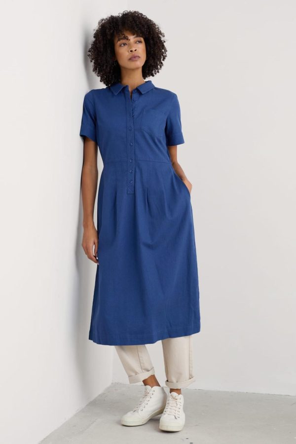 This season, add a versatile shirt dress to your wardrobe. Our short-sleeve Birch Glade is crafted from soft and breathable organic cotton. Its shirt-style bodice features a collar, smart buttoned placket and top patch pocket, with bust darts for a flattering shape. At the waist, it opens out into a full, midi-length skirt, complete with a handy pair of in-seam pockets.