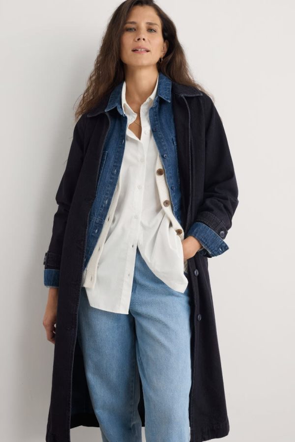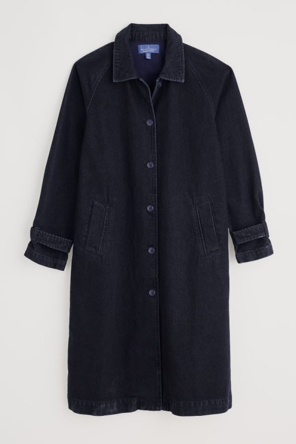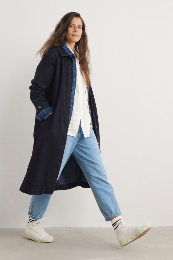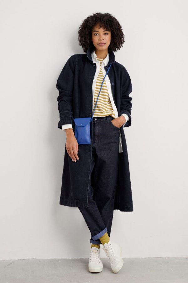 A truly versatile piece that you’ll reach for through the seasons. This long organic cotton jacket has a classic collar, mock-horn buttons down the front and at the tab cuffs, and angled pockets. Use the tabs at the waist back to adjust the fit. Perfect for pulling together an outfit with a fun pop of coastal colour.