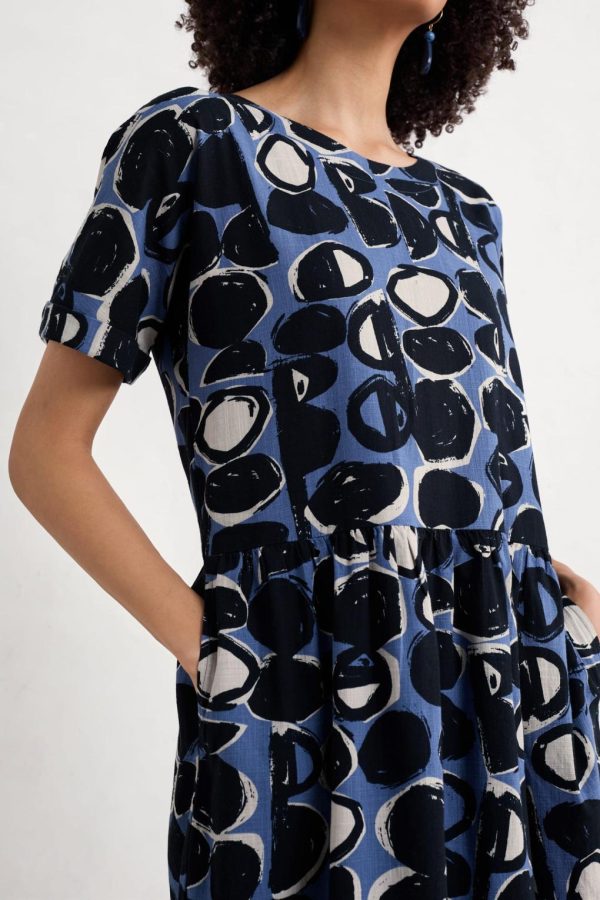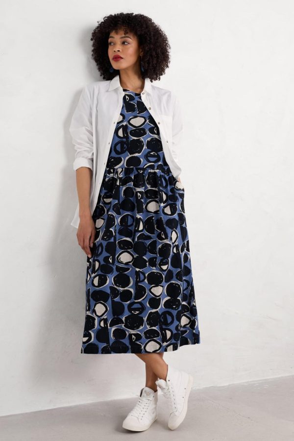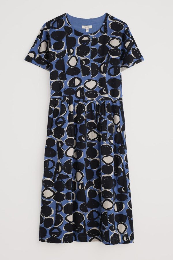 A loose-fit dress with a dropped waistline, in soft organic cotton. We’ve given it side seam pockets and gathers to the skirt that lend the style a beautiful swish. It’s perfect paired with crisp white trainers or heeled leather boots.If you prefer a neater fit, we recommend you choose a size down from what you’d usually wear.