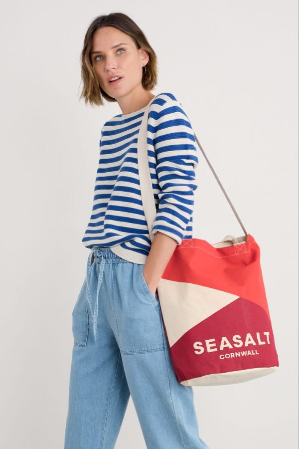 Our new canvas tote bag brings a splash of colour to your day with its bright red and orange design. The handy bag is made from 12oz woven organic cotton and features our logo on both sides. Its unlined main compartment fastens with a magnetic closure, and there’s an internal slip pocket for smaller items. It can be carried with the padded handle or the longer strap.