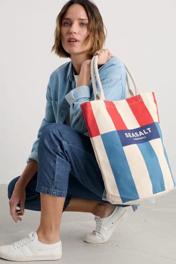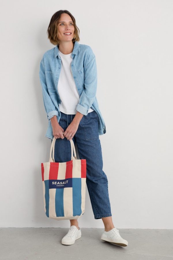 A handy everyday bag featuring a vibrant design of split stripes. Our new canvas tote bag is made from robust 12oz woven organic cotton and features our logo on both sides. The unlined compartment fastens with a magnetic closure, and there’s a useful slip pocket inside. Wear it over your shoulder with the strap or carry it with the padded handle.