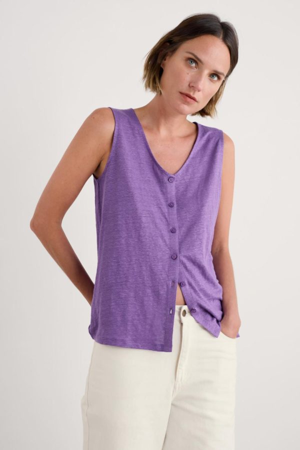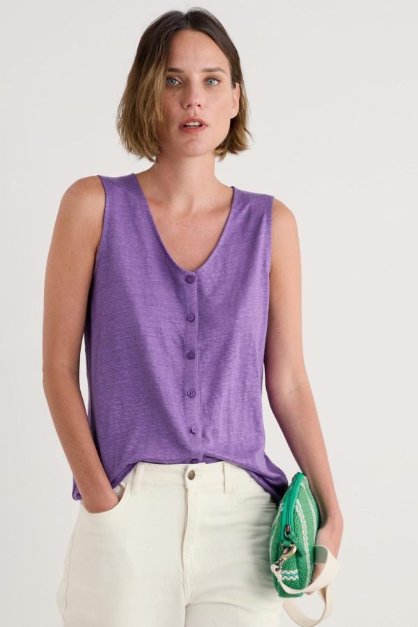 Crafted from pure linen jersey, our Carn Glaze Vest feels wonderfully luxurious to wear, with a supple drape and soft texture. We’ve kept the styling simple, with a deep V-neck and easy, straight fit, letting those vibrant colours take centre stage. The button-through top can be worn as an elevated layering piece or fastened as a vest.