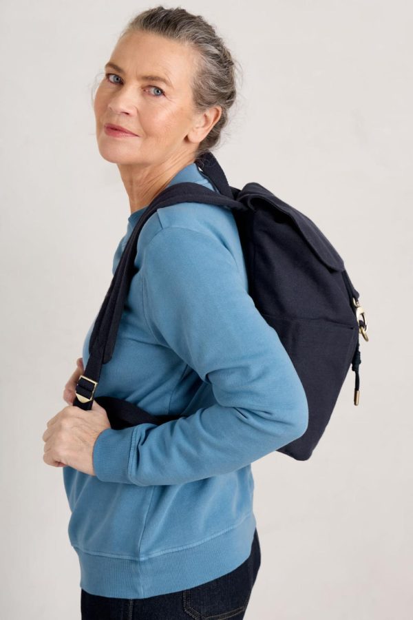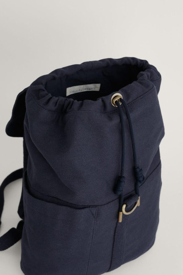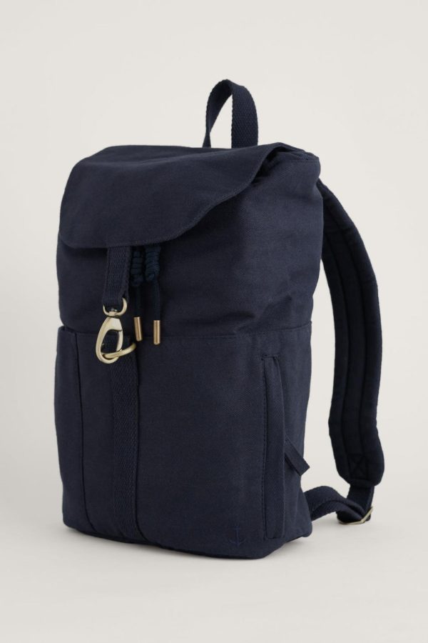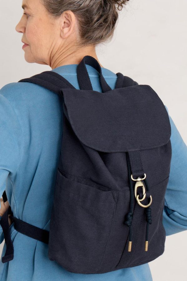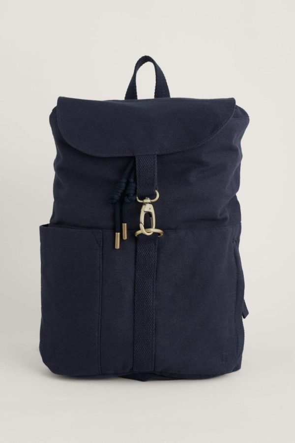 A pared-back, hard-working backpack for all your essentials, made from organic cotton with comfy padded straps and handy pockets. The main compartment has a drawstring top, which is then protected with a clasp-fastening flap.