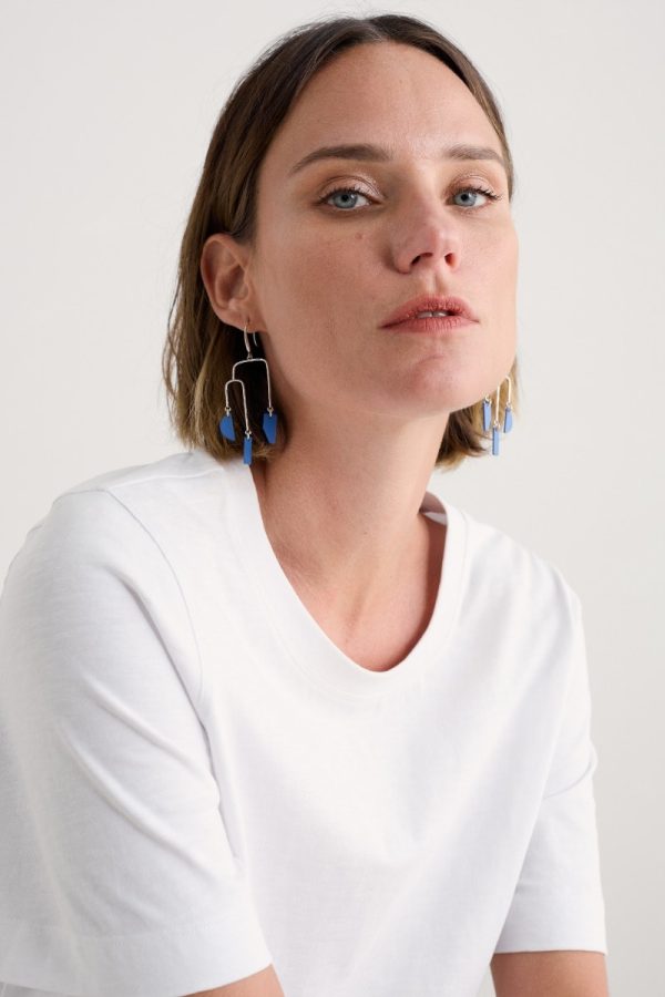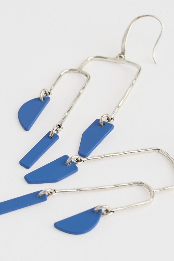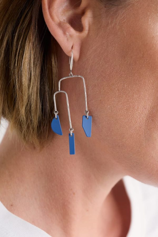 For a touch of subtle drama, try the elegantly long Earth to Sky earrings. The contemporary-style earrings feature three geometric resin drops suspended from shining silver-tone stems, held in place comfortably with matching silver-tone hooks. Perfect for evening or daytime wear.