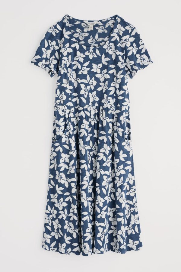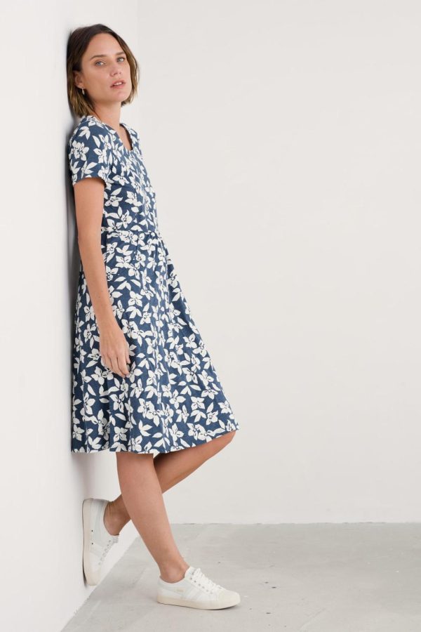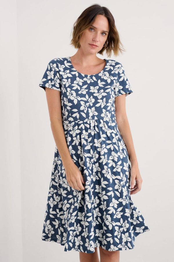 Our Enor Dress is made from naturally breathable organic cotton, which is beautifully soft against the skin. It falls below the knee and has a feminine fit, with an easy waist with soft gathers at waistband, scoop neck, short sleeves and two relaxed side pockets.