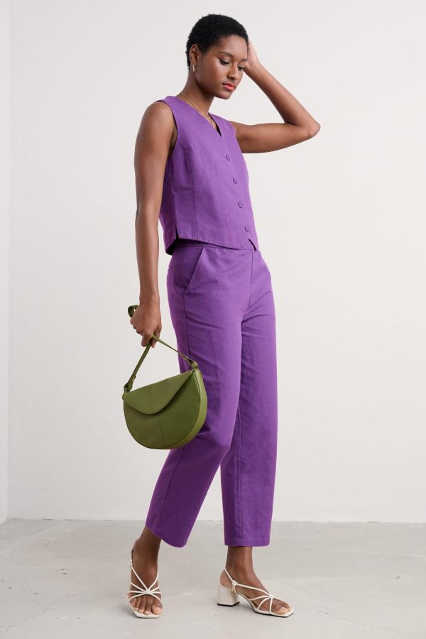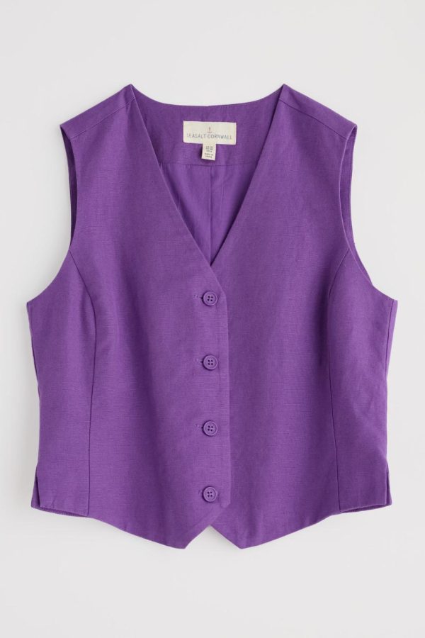 Our elegantly simple Erica Waistcoat adds a touch of classic tailoring to your outfit. It’s made from a cool and light blend of linen and organic cotton, lined with breathable organic cotton. The deep V-neckline leads into a row of mock horn buttons and is complemented by the traditional pointed hem. We’ve given the waistcoat princess seams for a flattering outline. Create a stylish three-piece by teaming it with a linen-cotton blazer and trousers, and wear it either layered over a shirt or as a stylish vest.