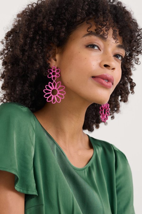If you love statement jewellery, finish your outfit with our Flowering Rush earrings. Generous blooms are crafted from wire wrapped in gorgeously colourful paper. At 8 cm long and weighing almost 10 grams each, these earrings are designed to be impactful. Maximise the effect by teaming them with the matching necklace.