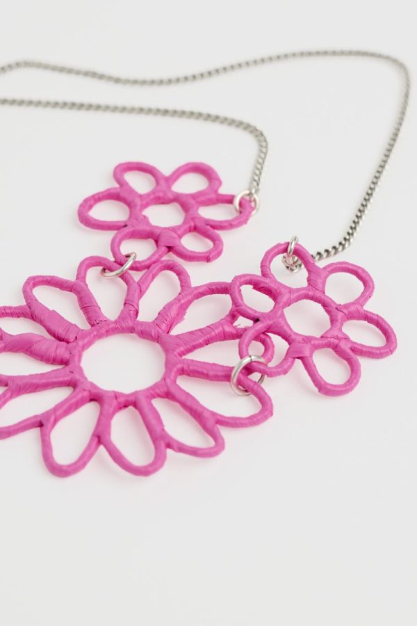 Our Flowering Rush necklace features a trio of beautiful blooms, crafted from shaped wire wrapped in colourful paper. They’re presented on a silver-tone chain, which can be adjusted in length to suit your outfit. On a bold scale, the necklace can be worn as a stand-alone statement piece or teamed with the matching earrings to maximise flower power.