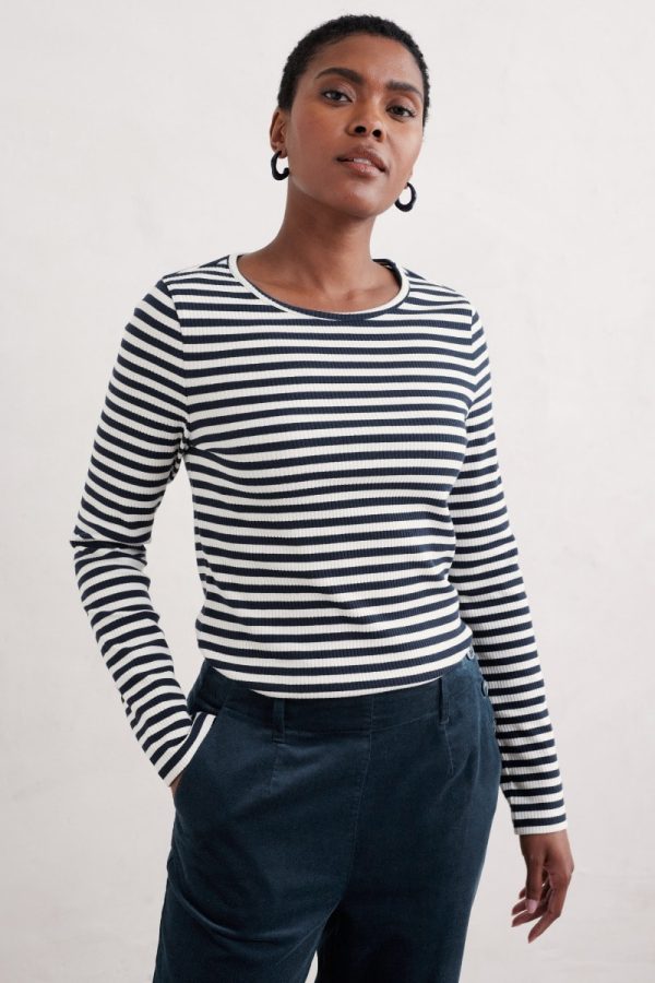 A real everyday favourite, the Gorse Lane is made from soft GOTS-certified organic cotton. The ribbed texture and added stretch make sure that the fitted top is comfortable to wear. Choose from a range of signature Seasalt shades and stripes, and pair with cords or jeans.