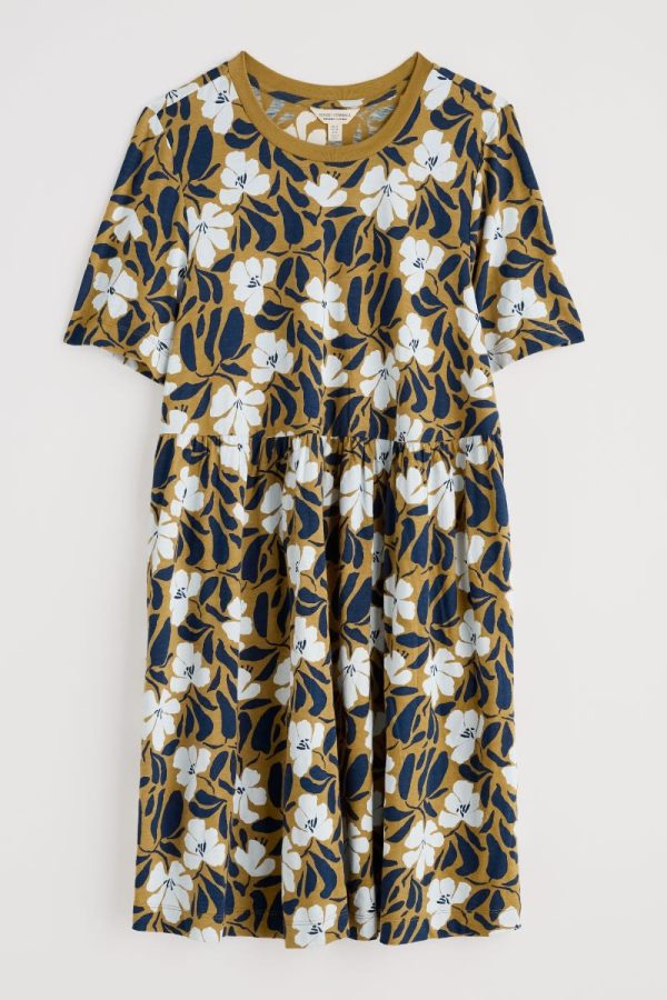 An easy-wearing summer T-shirt dress, made from soft organic cotton jersey. We’ve given the knee-length dress a relaxed, boxy fit, with loose-fitting half sleeves and gathers at the waist. It’s finished with a pair of in-seam pockets.