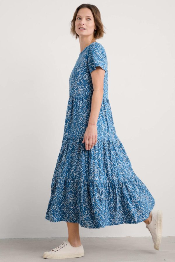 A short-sleeved version of our popular, easy-fit Line Strokes Dress, which has gently gathered tiers that create a relaxed A-line shape. The perfect jersey style for summer days by the sea or in the city.
