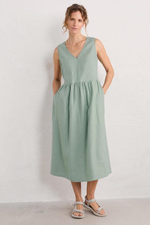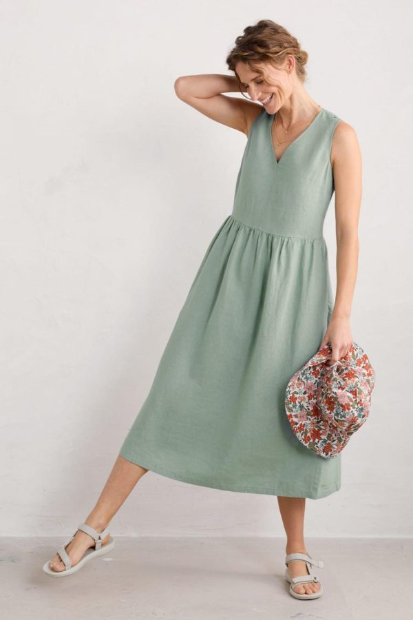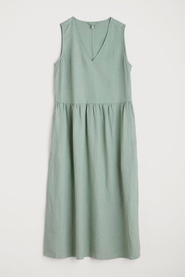 A V-neck dress you’ll find so many ways to layer and love. Darts on the bodice create a semi-fitted, but not clinging, shape, while evenly spaced gathers at the waist give a lovely, subtle volume. And we love a dress with pockets…