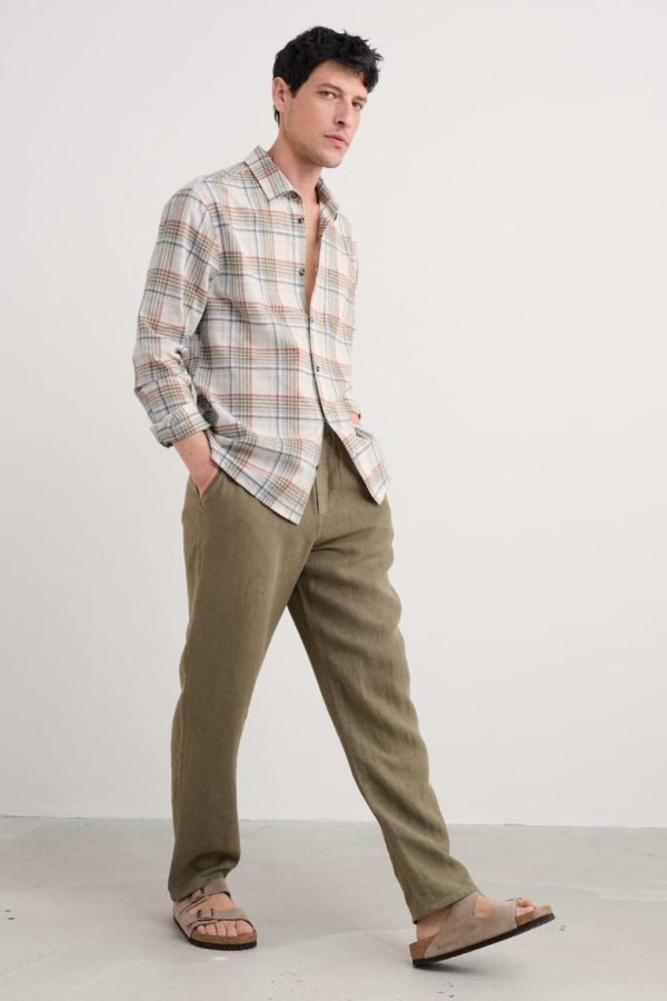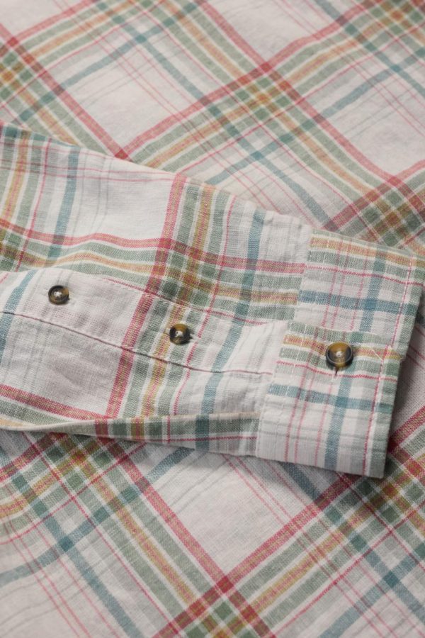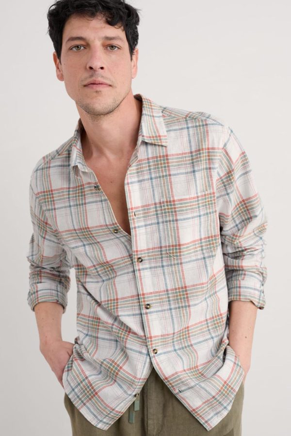 Made from a cool and breathable linen-cotton blend and with a comfortable relaxed fit, our Dip Circle Shirt is perfect for warmer days. The yarn-dyed checks bring warm tones to the long-sleeve shirt, contrasting with the mock horn buttons on the placket and cuffs. A collar and chest patch pocket add classic smart-casual touches. We’ve added side splits at the slightly curved hem, which looks equally good worn loose or tucked in.