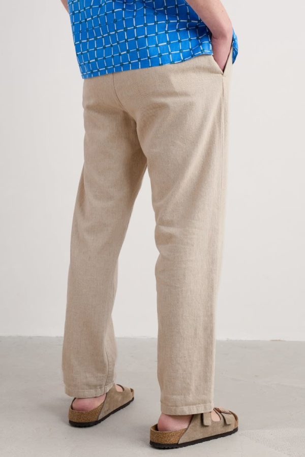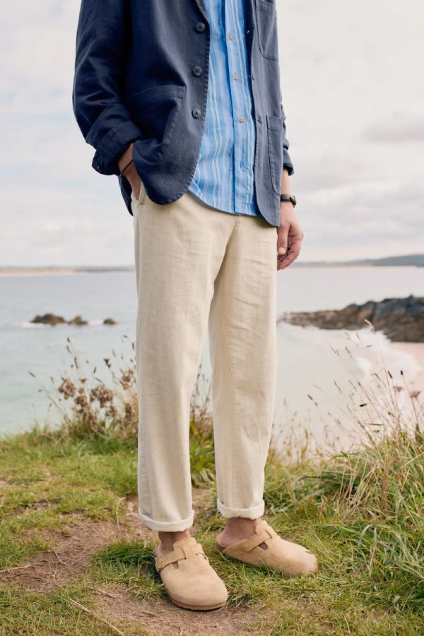Crafted from a soft and cool woven cotton-linen blend, our Messack Trousers are made for warmer days. They have a modern, slim-fit cut with darts at the back for shaping. Side seam pockets, back double jetted pockets and self-fabric belt loops add classic finishing touches. Pair with the undyed Messack Jacket for relaxed summer suiting.