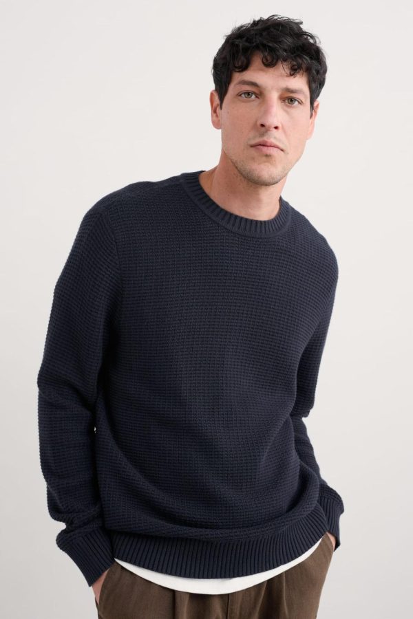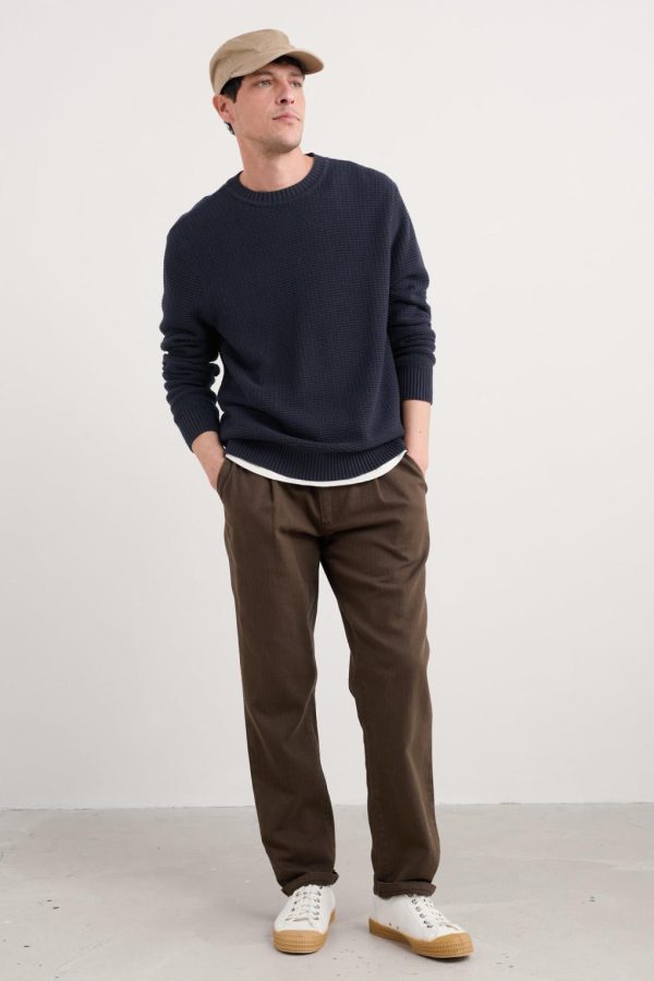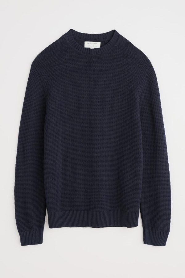 Update your casual wardrobe with this easy-wearing jumper, made from soft and breathable organic cotton. We’ve used a tuck stitch to create a waffly textured finish, while the medium-weight knit makes it a versatile layering piece. It’s finished with neat ribbed trims on the crew neck, cuffs and hem. A real future favourite.