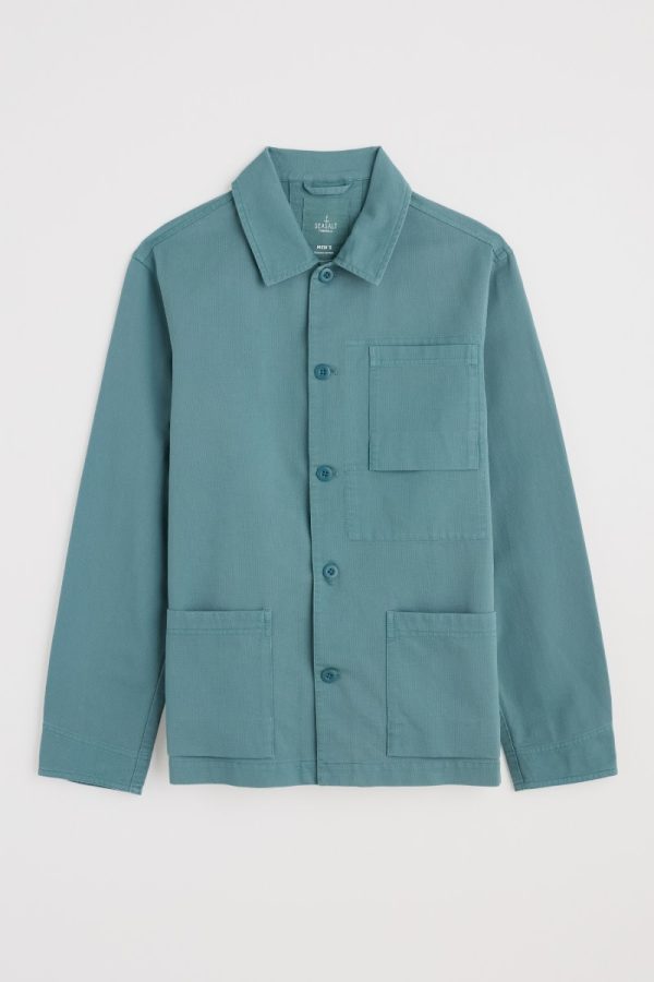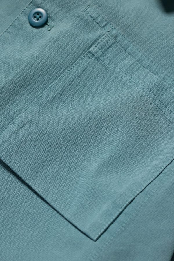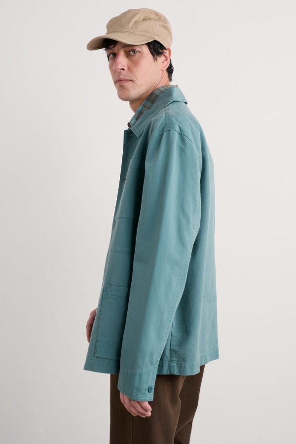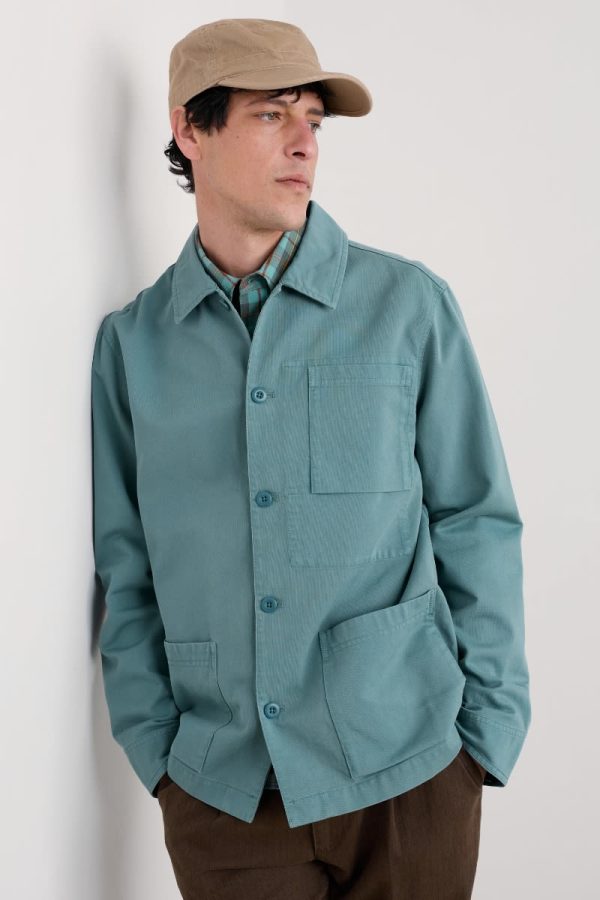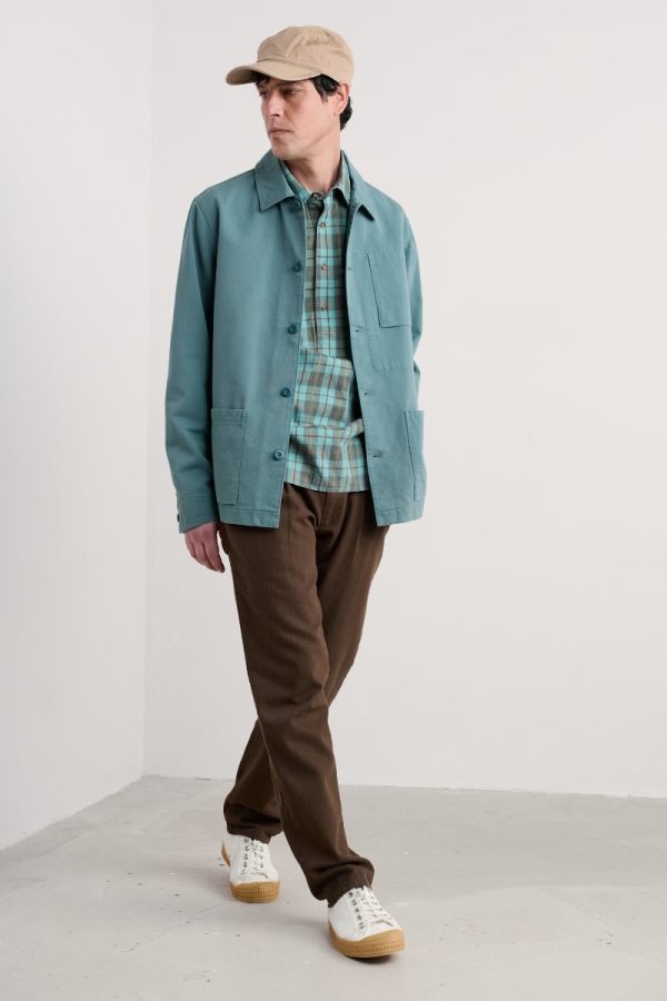 A durable, versatile jacket made from a supple but strong organic cotton with a subtle texture. The handy reinforced pockets are folded up at the bottom with no cut seam, and the chest pocket has a hidden side entry pocket layered underneath the patch pocket. Twin stitch detailing on the shoulders, and curved cuff. Fasten with tonal buttons up to the classic collar.
