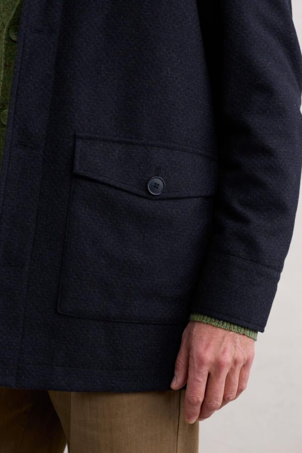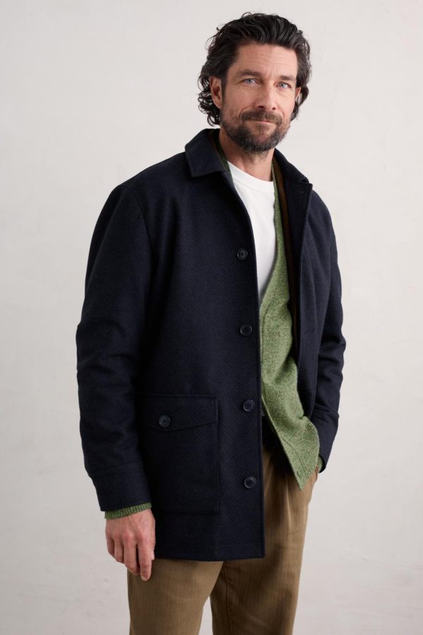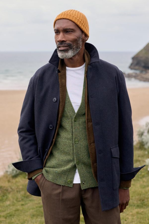 An easy-wearing overcoat, made from a blend of recycled wool and robust recycled fibres. There’s a slight texture and subtle fleck to the fabric, bringing extra depth to the rich colour. Dual-entry patch pockets, an inside pocket and a classic collar add traditional details to the mid-length coat, which is lined for wearable comfort. The smart mock horn buttons along the placket match those of the working cuffs.