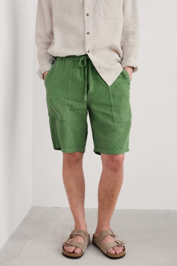 In cool and breathable linen, our Sandcart Shorts are made for sunny weather. They have a comfortable elasticated waist, which can be adjusted with the drawcord for a perfect fit. Generous front pockets and a rear jet pocket add the finishing touches.