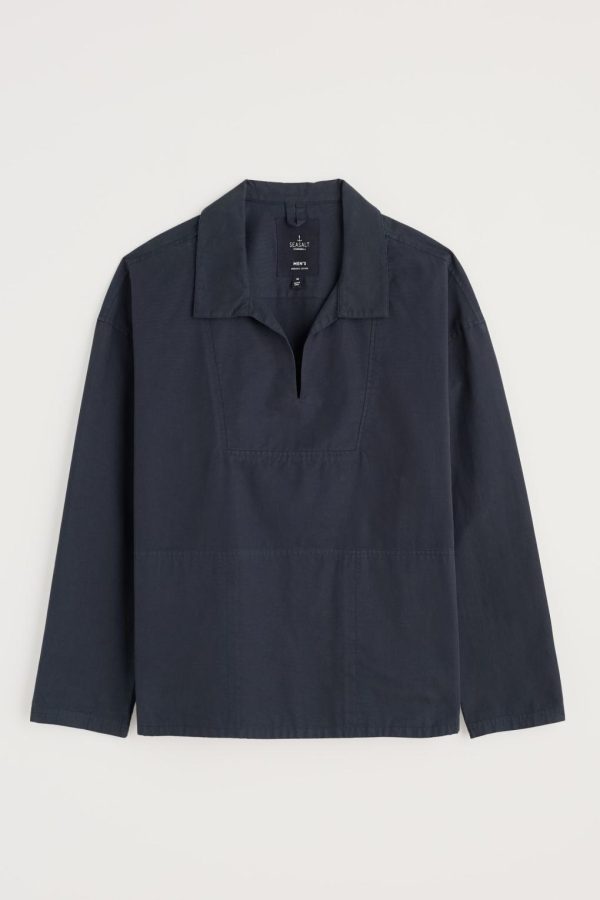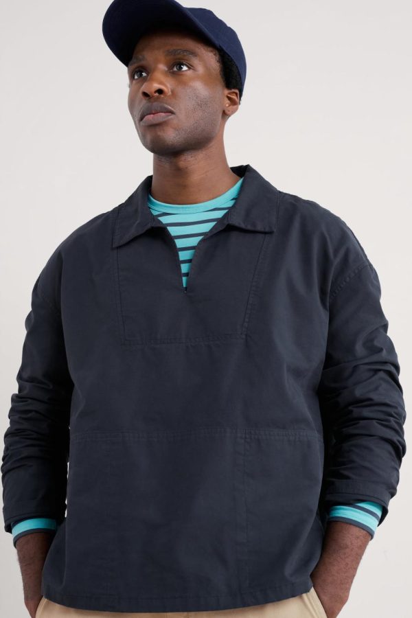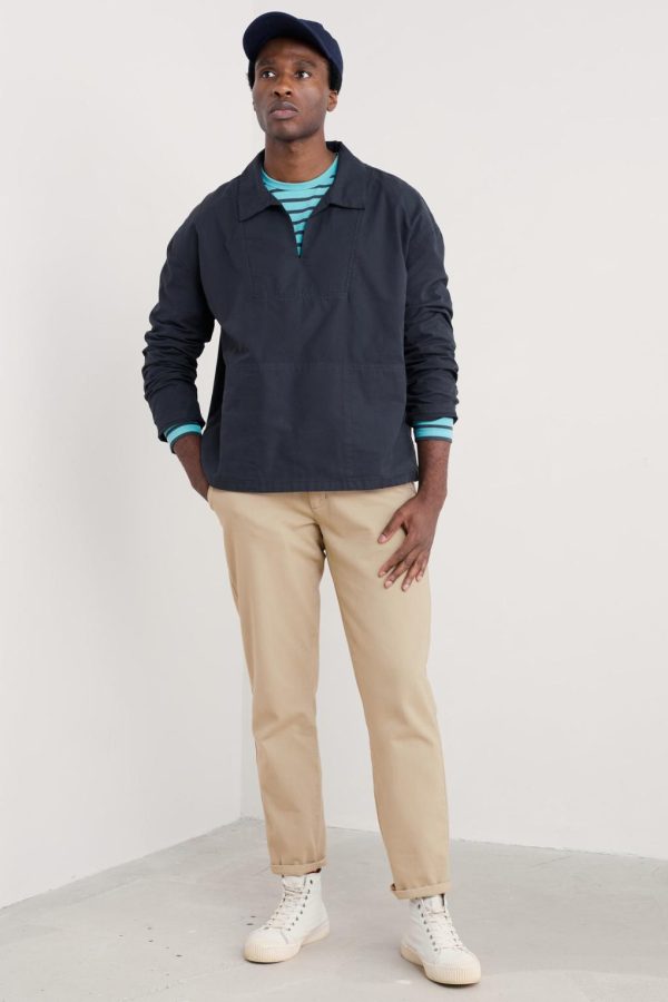 A hardworking collared pull-on smock for men, with an easy fit and spacious apron-style pockets at the front. Made from durable organic cotton canvas with top stitched panels and a classic, easy fit, perfect for layering over T-shirts or shirts.