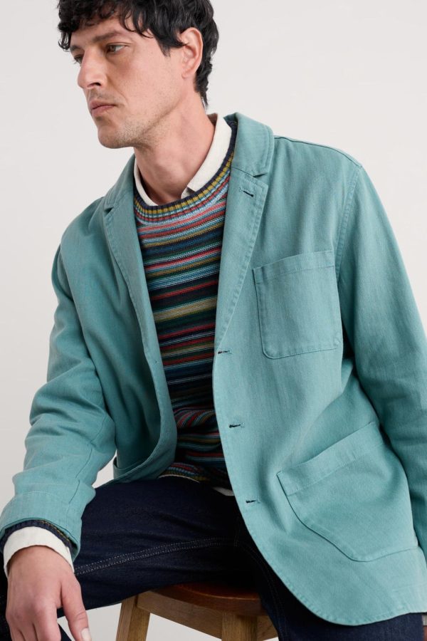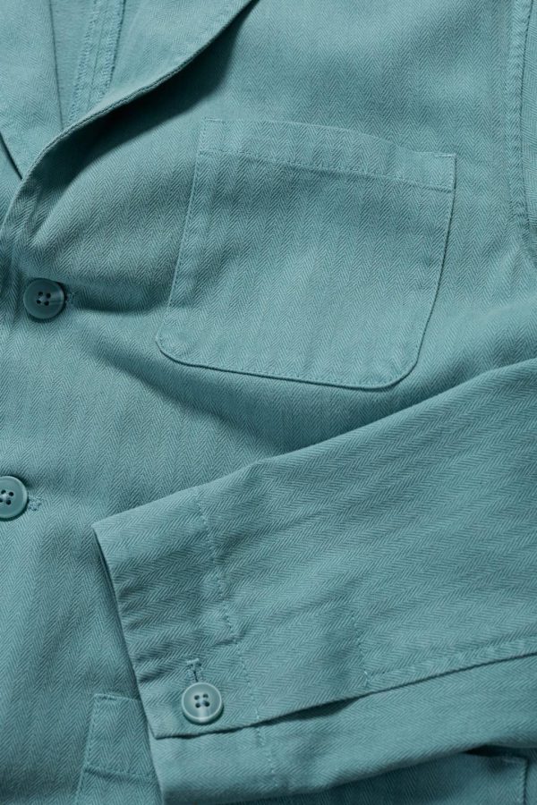 A casual jacket, inspired by the way Cornish artists would adopt the tough workwear of fishermen to wear in the studio. Made from a cotton and linen blend that is durable but comfortable, with a light herringbone texture. An easy extra layer over T-shirts or shirts. Designed to pair with the Helmsman Trousers.