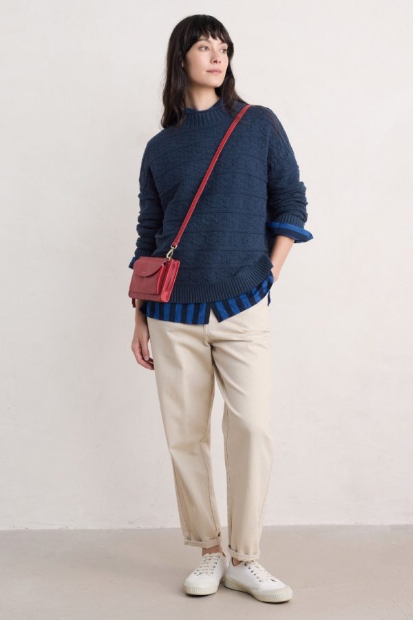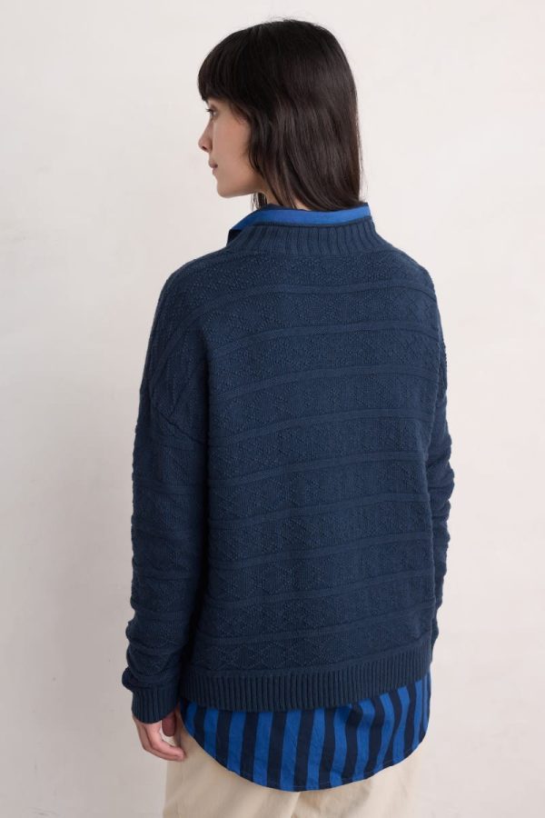A pattern of mixed stitches gives the Penkestle jumper plenty of texture and character. It’s crafted from a blend of organic cotton with recycled cotton fibres – and the result is a soft, breathable and long-lasting piece. It has a warm, mid-weight knit and a cosy high neck, with a jersey roll that’s soft against your skin. The relaxed fit and dropped shoulders give the jumper a lovely, laid-back feel – perfect for everyday comfort.