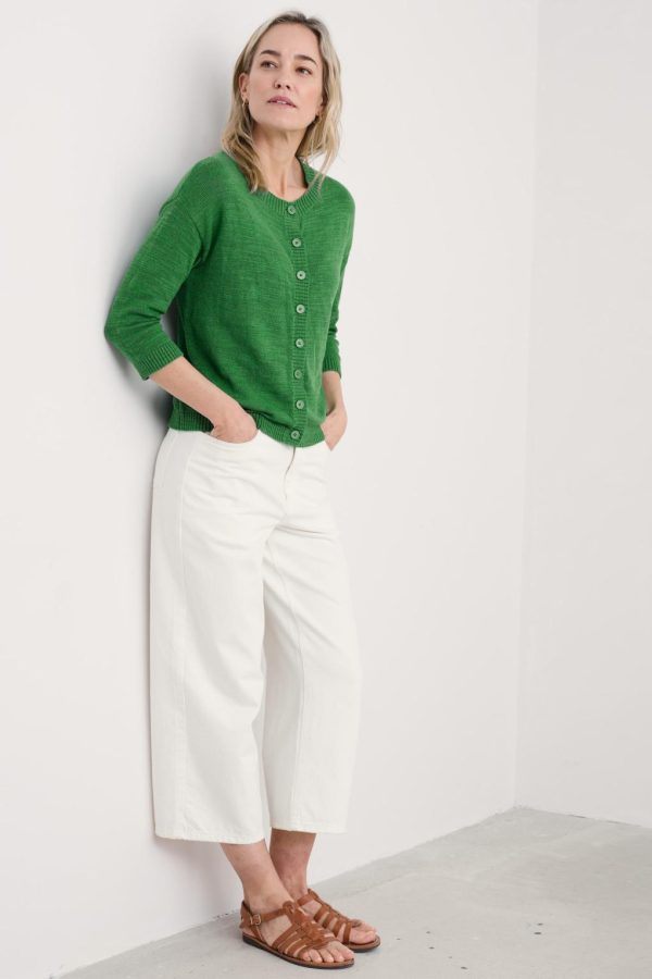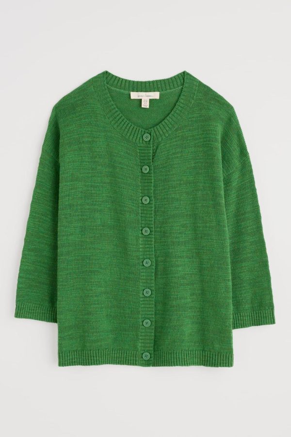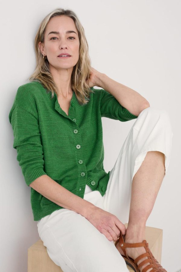 A classic button-through cardigan, knitted from a soft blend of organic cotton and linen fibres. It has an easy fit through the body, with dropped shoulders for a relaxed feel and 3/4 length sleeves. Ribbed trims at the round neck, cuffs and hem bring a neat finishing touch.