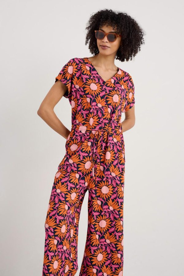 An easy, elegant outfit in one. Our printed Rose Trellis Jumpsuit is made from a soft, drapey blend of cotton and modal, which is silky-smooth and made with wood from sustainably managed forests. With flattering wide culottes-style legs, a V-neck button placket and a drawstring waist so you can adjust to your perfect fit.