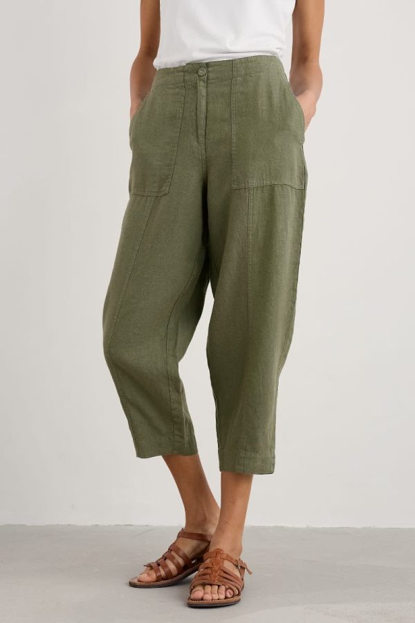 Meet your new favourite crops. These straight-leg trousers are made from naturally cool and breathable linen, and have been garment-dyed for a rich colour with a lived-in look. We’ve added thoughtful details like a grown-on waistband for a smooth finish, and little side splits in the hems. There are two large utility-style pockets to the front as well as two patch pockets at the back.