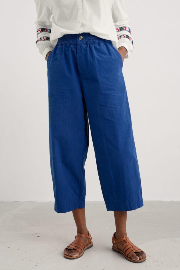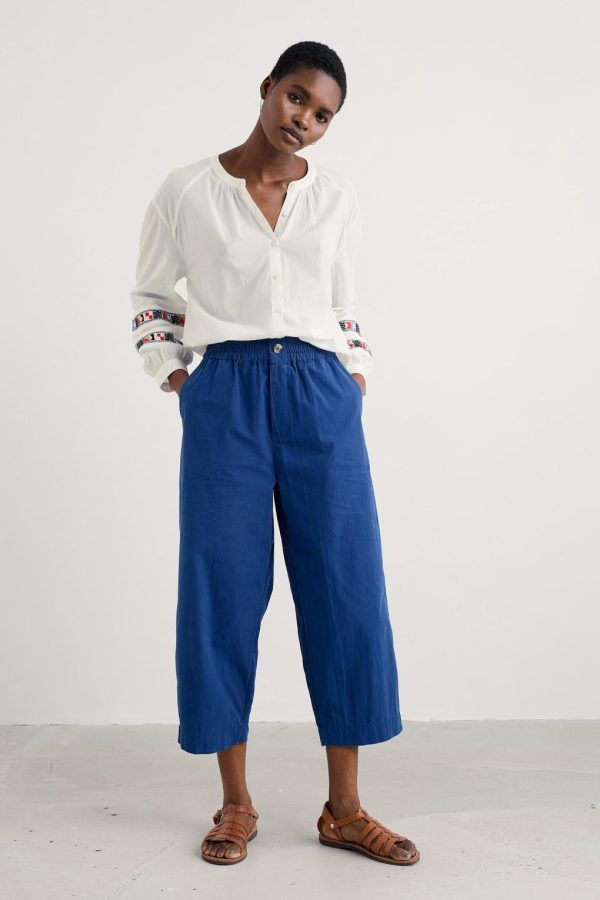 Meet our latest cropped trousers, the summer-ready Sequence Crops. They’re made from lightweight organic cotton poplin, with relaxed, tapered legs. The comfortable elasticated waistband features a mock fly detail with a button. We’ve finished the crops with a pair of front side pockets and patch pockets at the back.