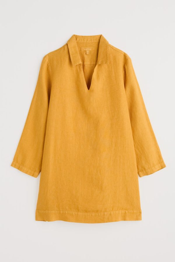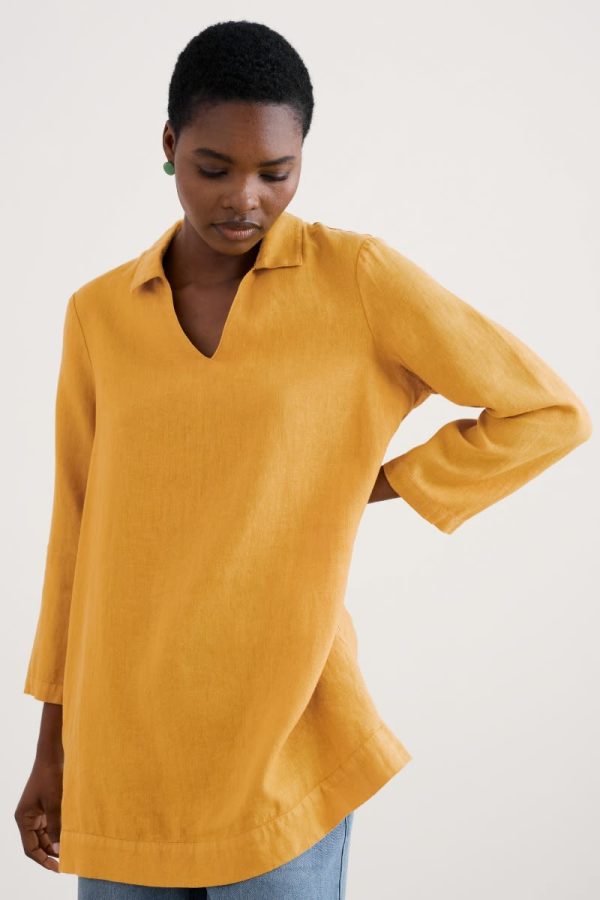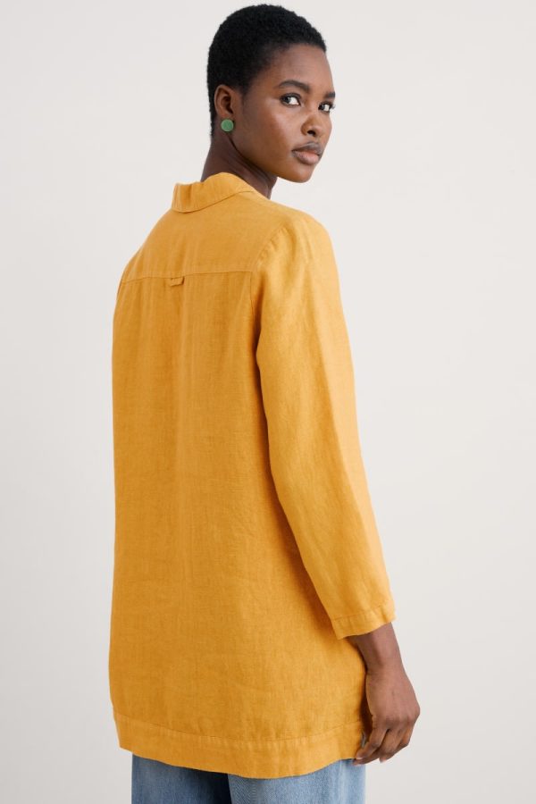 A simple tunic smock in pure linen, inspired by the studiowear of Cornish artists. This pull-on piece has deep side seam splits and bracelet length sleeves, so we love it layered over narrow trousers with a classic Sailor Shirt for a peep of stripe at the cuffs and notch neckline. Breathable linen has been garment-dyed for rich colour that will develop more character with every year of wear.