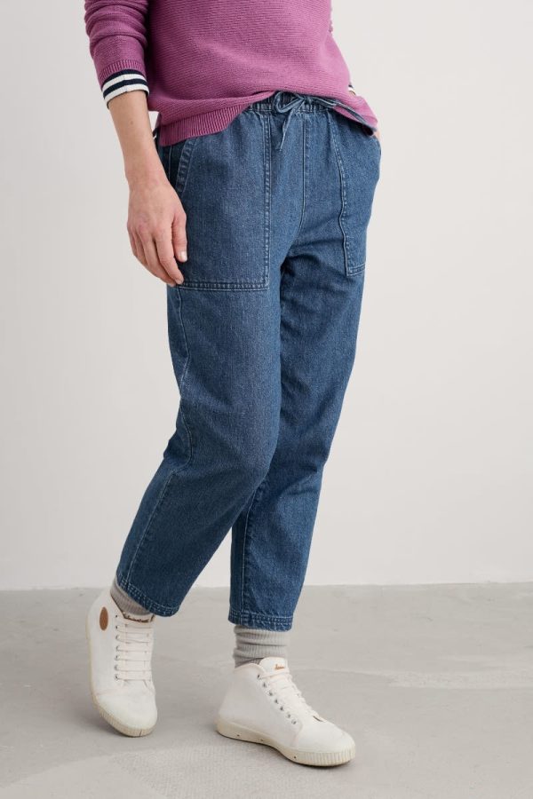 Jogger-style trousers crafted from a soft and breathable denim. Cool, comfortable and casual, our Sholl joggers are designed with a gently tapered and slightly cropped fit, pull-on elasticated waistband and generous patch pockets.