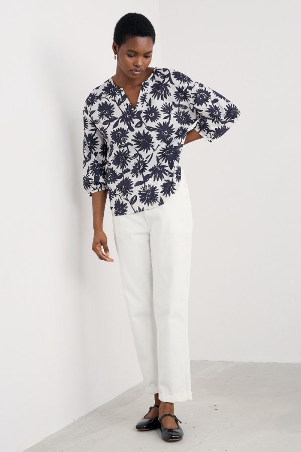 Crafted from light and breathable GOTS-certified organic cotton and made for sunny days. Our Streamlet Top has an easy swing shape with dropped shoulders for a relaxed feel. The soft three-quarter blouson sleeves complement the drapey bodice, while the V-shaped notch neckline adds a contrasting focal point. In an original Seasalt floral print.