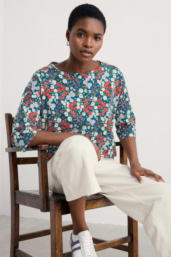 Made with GOTS-certified organic cotton jersey, this simple, laid-back top has a boat neckline, dropped half sleeves and slightly curved hem. Try tucking into skirts, layering under pinafores or styling with trousers.