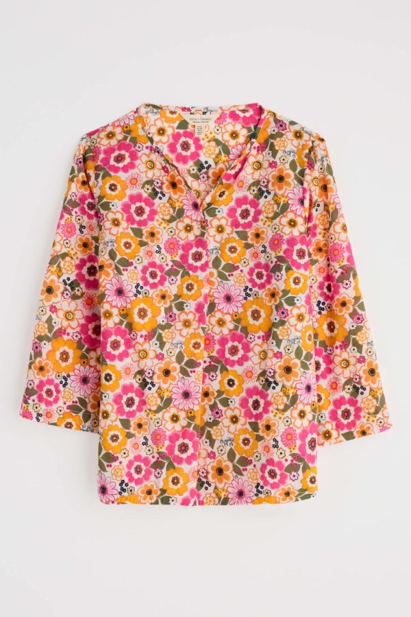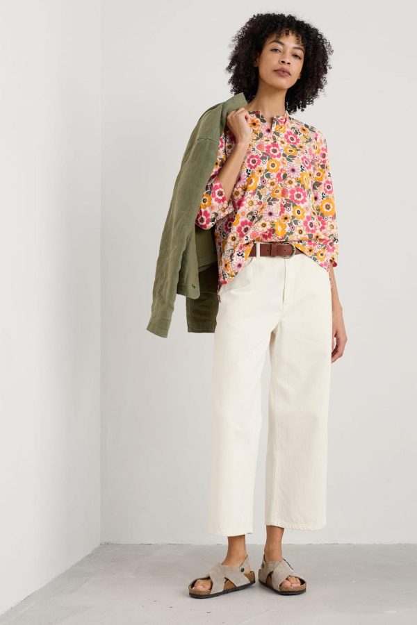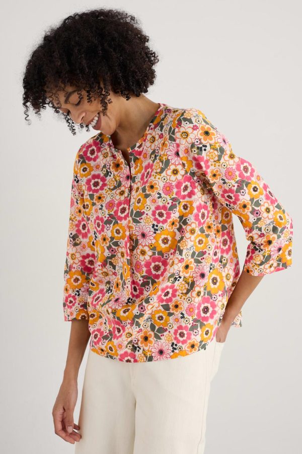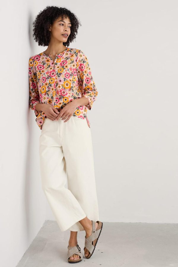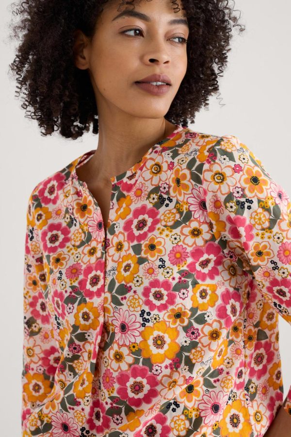 A pretty, relaxed top with feminine details, made from soft and breathable cotton. The notch neck has a functioning singular button and a subtle crossover design, while the dropped hem has curved edges that look great worn loose over trousers. Just add a pair of easy trainers for effortless everyday style.