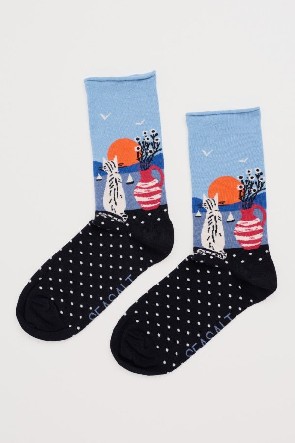 Lightweight, organic cotton ankle socks, with colourful arty designs to put a smile on your face. Finished with contrast toes and heels, branded soles and comfy, rolled-edge cuffs. Choose from a range of unique designs, inspired by Cornwall.